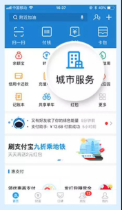 首先,將定位設(shè)置為“煙臺”,在支付寶首頁選擇“城市服務(wù)”