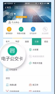 在此界面下,選擇“交通”欄下的“電子公交卡”