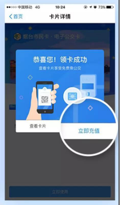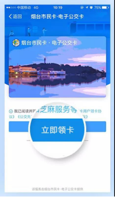 出現(xiàn)煙臺市民卡·電子公交卡,點(diǎn)擊“立即領(lǐng)卡”