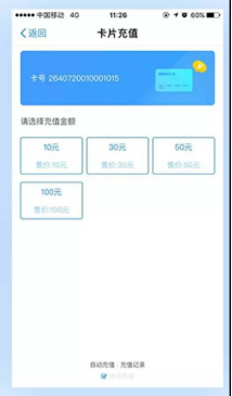 充值金額有“10元”、“30元”、“50元”、“100元”四個(gè)面值,可以根據(jù)自己的需要選擇充值金額